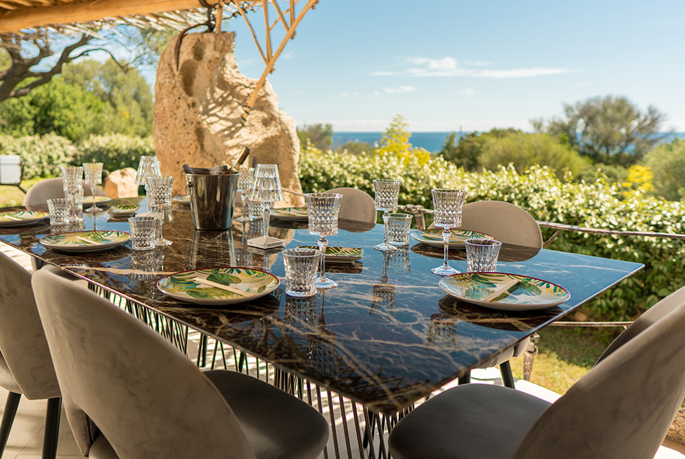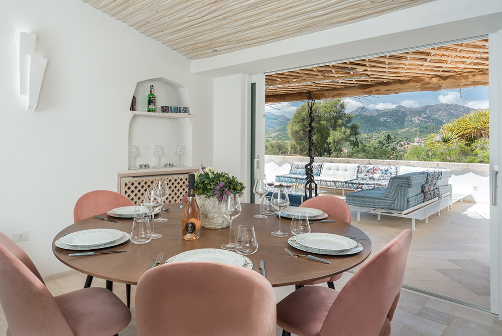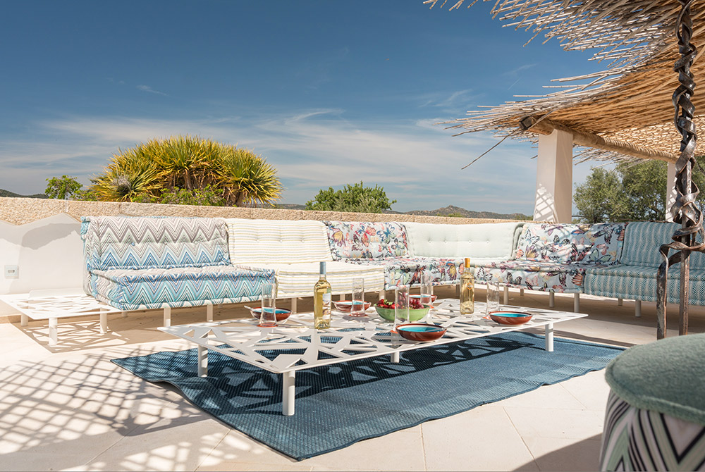 Villa Cucu - hier können Sie Ihren Apéritiv in entspannter Runde genießen, es ist viel Platz und die bequemen Sitze sehen auch noch toll aus - ganz zu schweigen von der umliegenden Landschaft ...