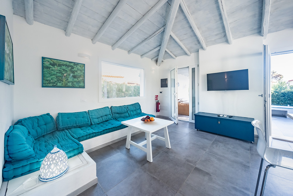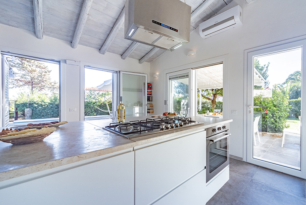 Villa Grina - der Wohnraum mit Sitzlandschaft und großem Kochbereich