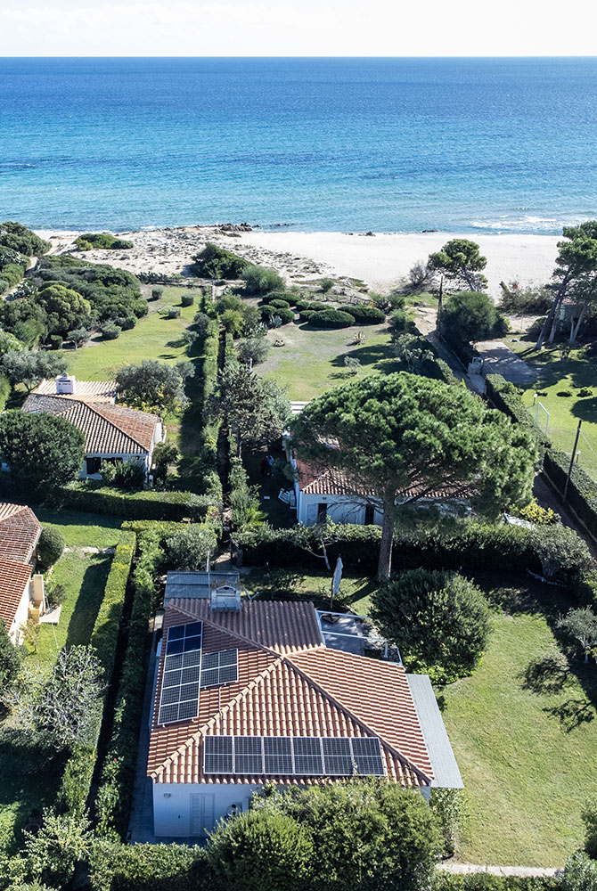 Villa Grina, freistehend und vollständig umzäunt, mit mehreren großzügigen Veranden und einem schönen Garten steht besonders strandnah am Ende von Monte Nai (Costa Rei) in einer exklusiven Villensiedlung.
