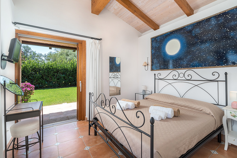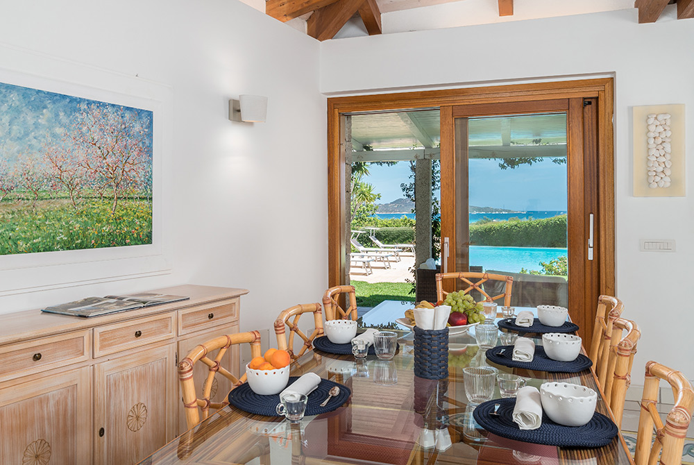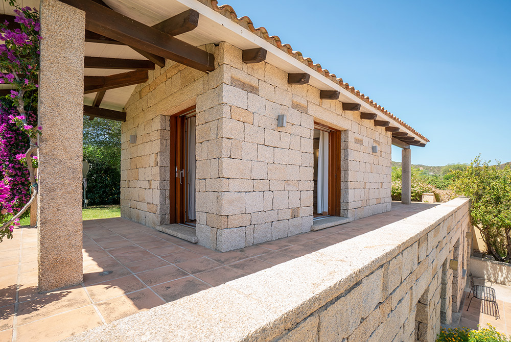 Das Haupthaus besteht aus einem hellen und geräumigen Wohnbereich mit komfortablem Wohn- und Esszimmer, einer sehr gut ausgestatteten Küche und einem Hauptschlafzimmer mit geräumigem Bad (Badewanne und Dusche) und begehbarem Kleiderschrank. Sowohl der Wohnbereich als auch das Schlafzimmer haben direkten Zugang zur großen überdachten Veranda und bieten einen herrlichen Meerblick. Der Hafen und der Flughafen von Olbia sind etwa 30 Minuten entfernt.