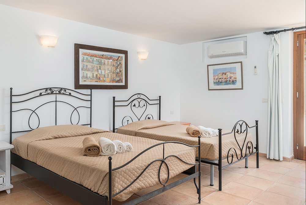 Villa Mira - Schlafzimmer mit 2 Einzelbetten, Ausgang zur Terrasse und Bad ensuite