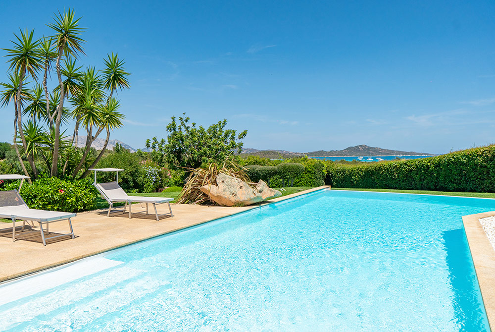 Villa Mira steht in Puntaldia (Nordostsardinien) - ein elegantes, freistehendes Haus mit Dépendence, umgeben von einem gepflegten und großzügigen Privatgarten mit Pool. Das Anwesen liegt in der Nähe des besonders schönen Strandes Lu Impostu, in einer exklusiven, ruhigen Wohnanlage in ungestörter Privacy.