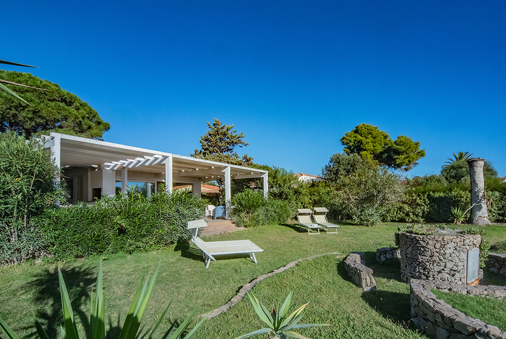 Villa Plaja, freistehend und vollständig umzäunt, mit mehreren großzügigen Veranden und einem schönen Garten steht besonders strandnah am Ende von Monte Nai (Costa Rei) in einer exklusiven Villensiedlung.