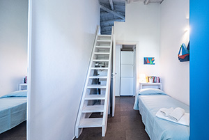 Villa Plaja - das dritte Schlafzimmer mit 3 Einzelbetten, eins davon befindet sich oben im kleinen Loft