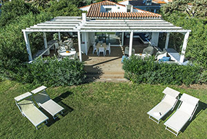 Villa Plaja, freistehend und vollständig umzäunt, mit mehreren großzügigen Veranden und einem schönen Garten steht besonders strandnah am Ende von Monte Nai (Costa Rei) in einer exklusiven Villensiedlung. Der Strand grenzt direkt an den umzäunten Garten und ist vom Haus aus über einen sehr kurzen (20 Meter), privaten Fußweg zu erreichen. Zwei private Parkplätze stehen zur Verfügung.
