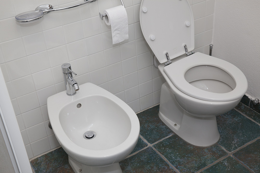 Bad mit Vollausstattung, WC, Bidet, Waschtisch und Dusche