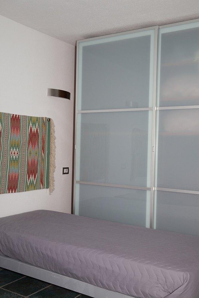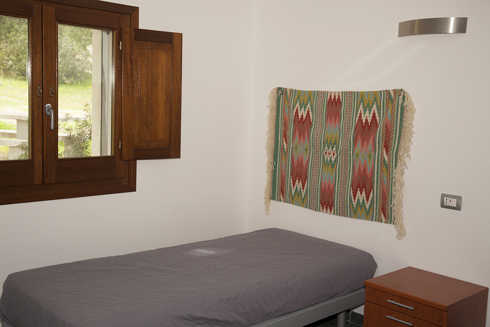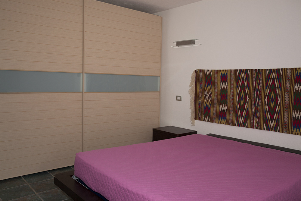 Casa Albinu - ein Schlafzimmer mit Matrimoniale, Fenster zum Garten und großem Wandschrank