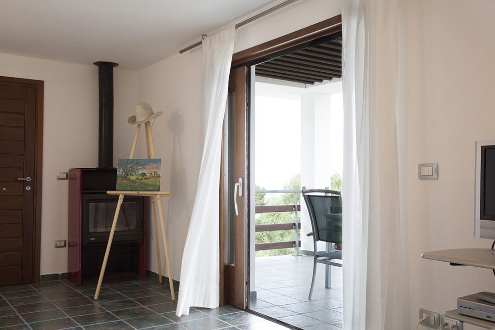 Casa Albinu - dem Sofa gegenüber steht ein Kaminofen