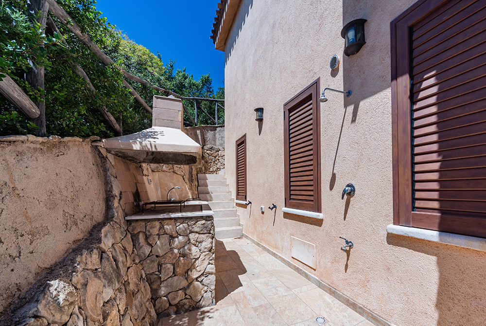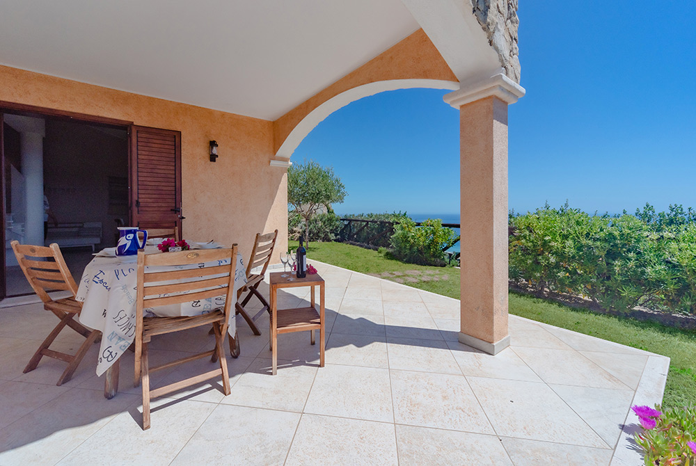 Villa Albore - Im Außenbereich können Sie auf der großen überdachten Veranda angenehme Momente an der frischen Luft genießen, während Sie einen eindrucksvollen Blick auf das Meer haben, und der kleine gepflegte Vorgarten lädt zum Sonnenbaden ein.