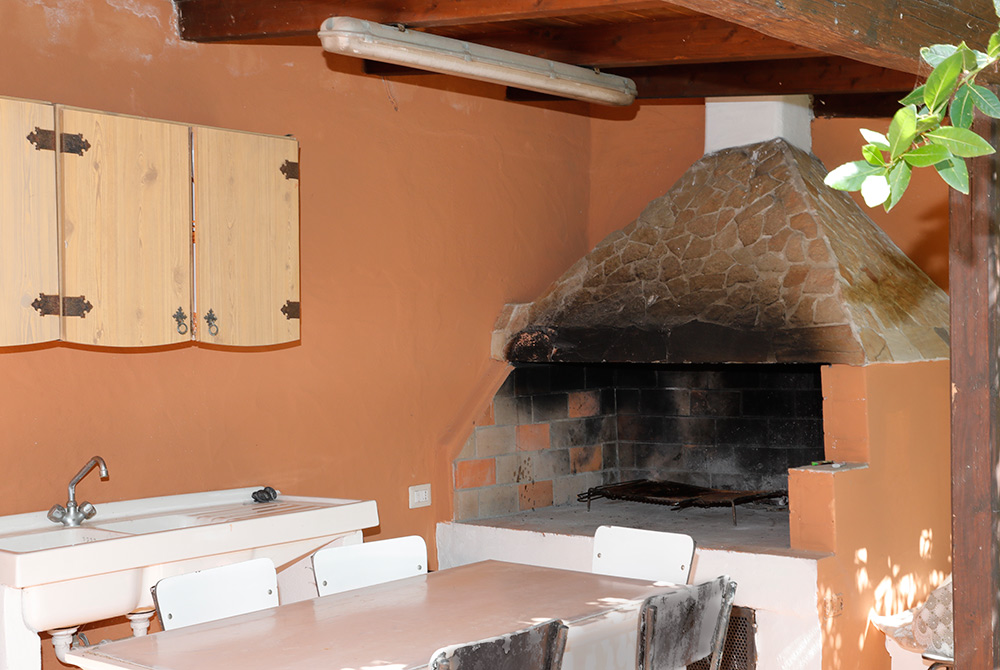 Villa Alligresa - der Barbecuebereich mit großem gemauertem Grill, Waschbecken und Esstisch