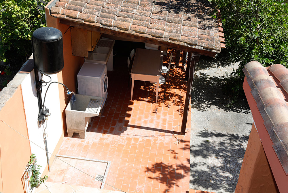 Villa Alligresa - überdachte Grillecke mit Waschbecken und Waschmaschine