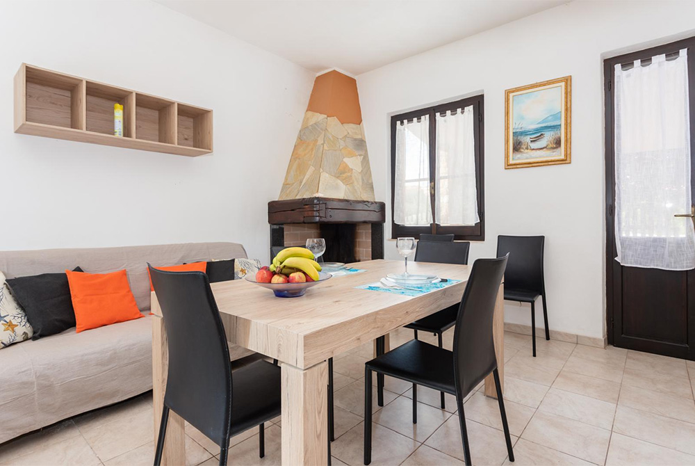 Villa Alligresa - der Soggiorno mit Esstisch und Tür zur hinteren Terrasse