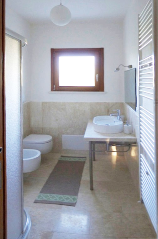 Casa Antonella sul Golf - das Bad mit Vollausstattung, WC, Bidet, Waschtisch und Dusche