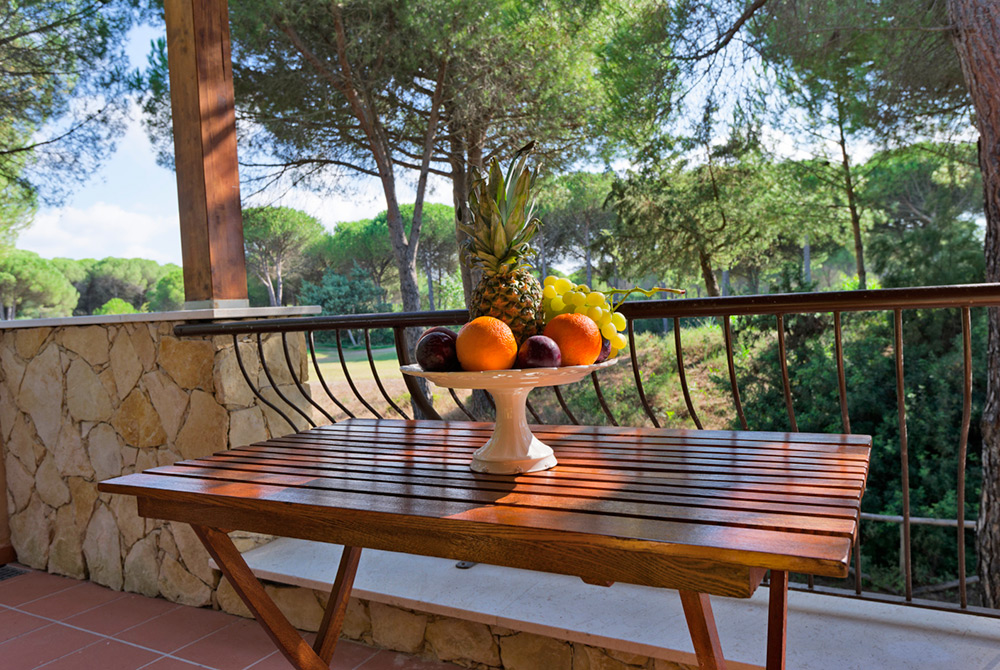 Casa Antonella sul Golf - die Terrasse im Halbschatten der hohen Pinien