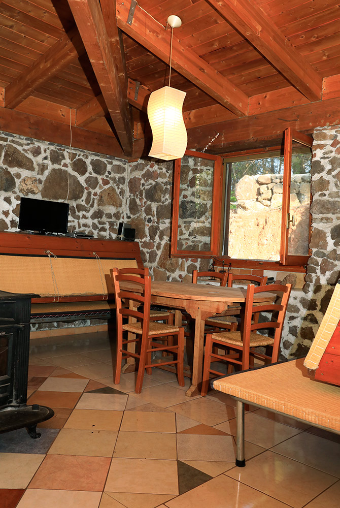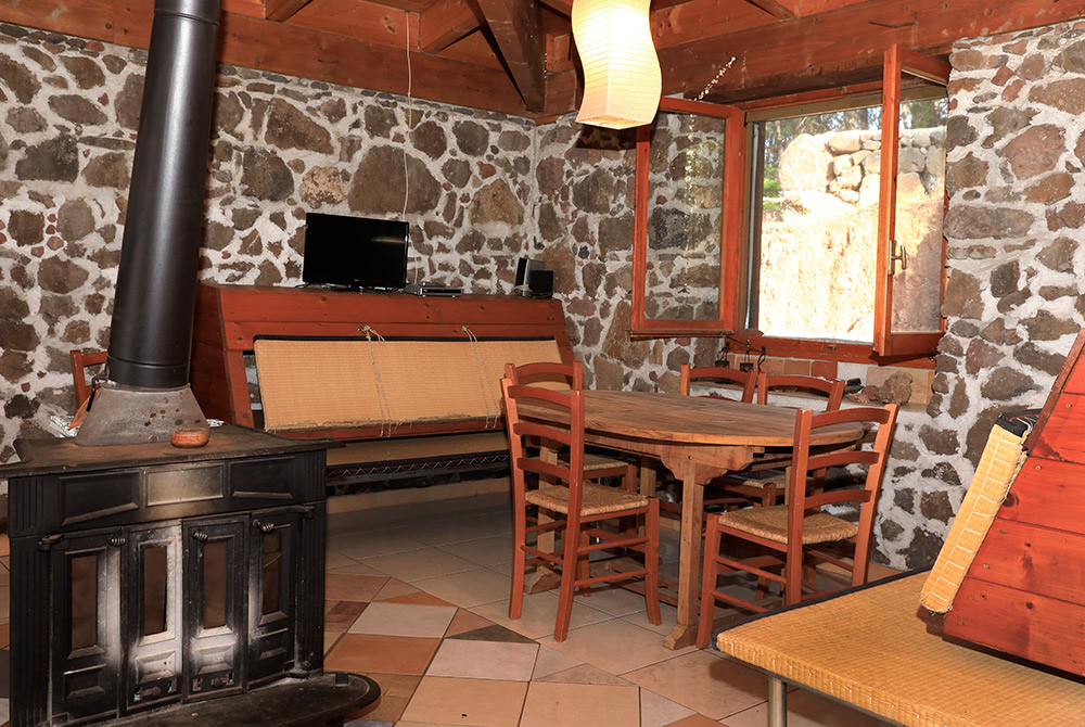 Casa Antunna im Herbst - der gußeiserne Ofen im zentralen Wohnraum heizt das Haus in der kühlen Jahreszeit. Es wird gemütlich warm.