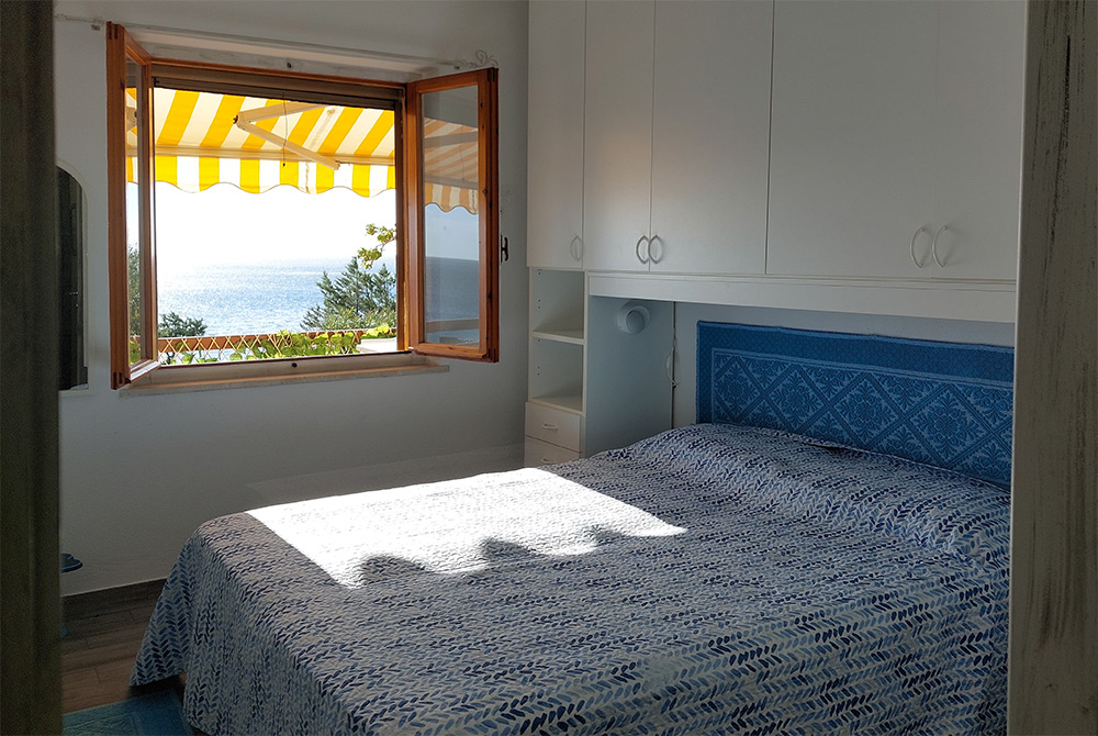 Die kleine Wohnung bietet zwei Schlafzimmer, eine Wohnküche, eine Terrasse mit fantastischem Meerblick und ein modernes Bad.