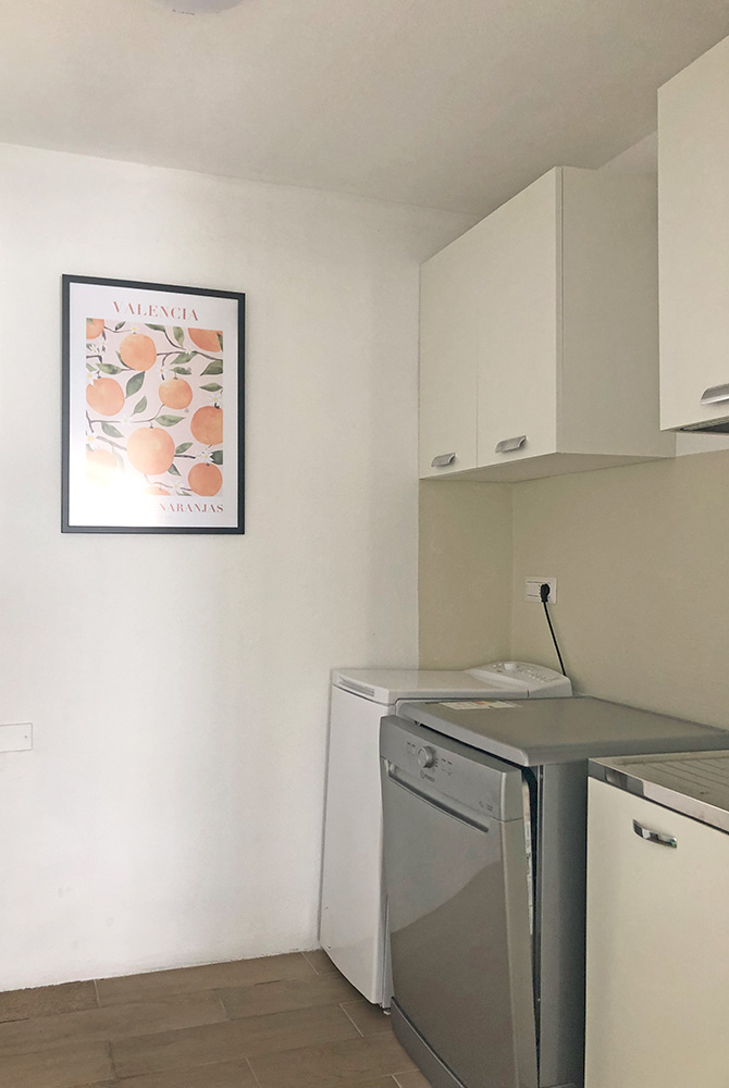Villa Arrosa - Die Innenraumgestaltung mit Farbakzenten in Grau, Senfgelb, Nachtblau und Siena, ergänzt durch elegante Schwarz-Weiß-Fotografien, schafft eine Atmosphäre von gemütlicher Wärme. Die gute Ausstattung des Hauses, inklusive Klimaanlage im Wohnzimmer, Grill, Backofen, Mikrowelle, WLAN, Spülmaschine und Waschmaschine, verspricht einen angenehmen Aufenthalt.