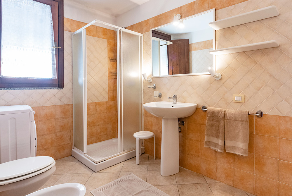 Casa Astori - das Bad mit Dusche, WC, Waschbecken und Bidet