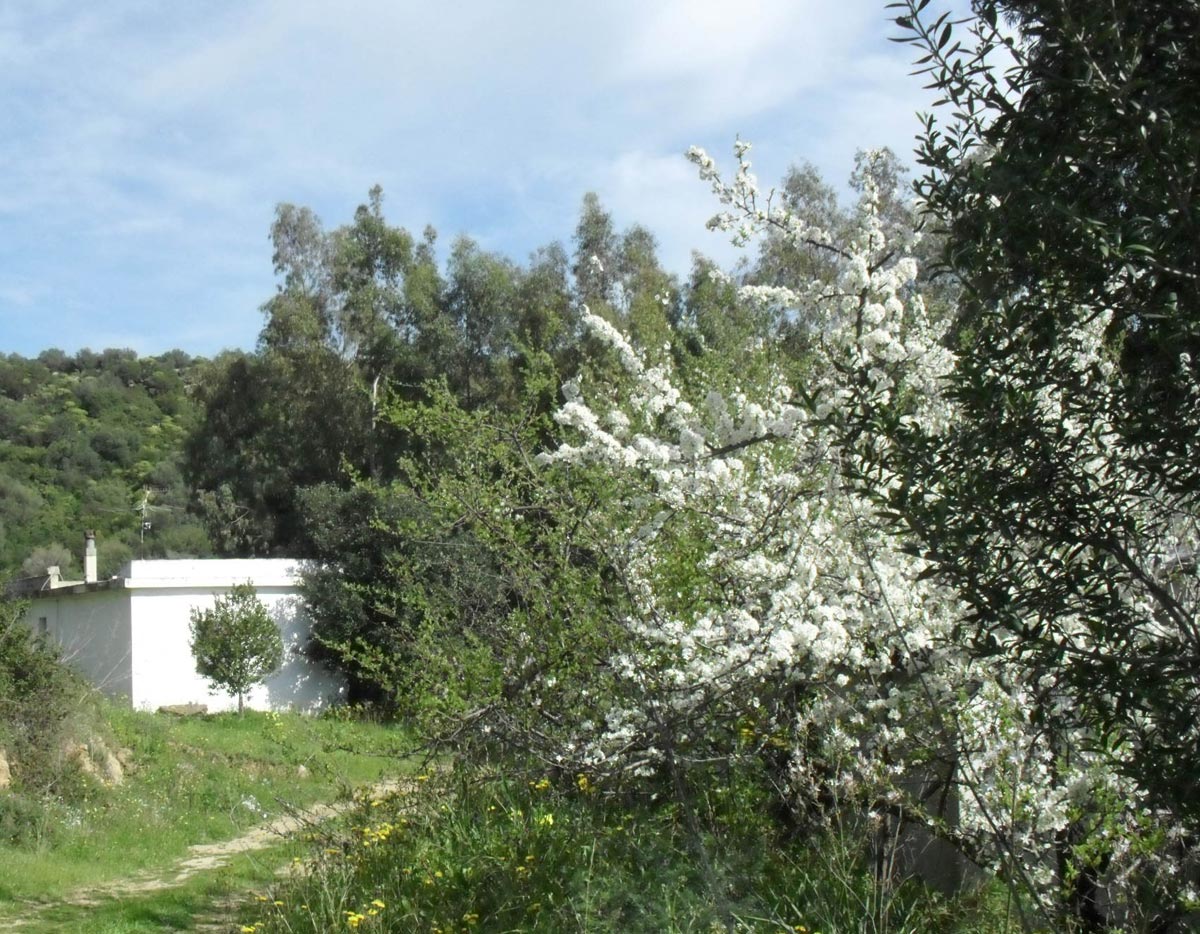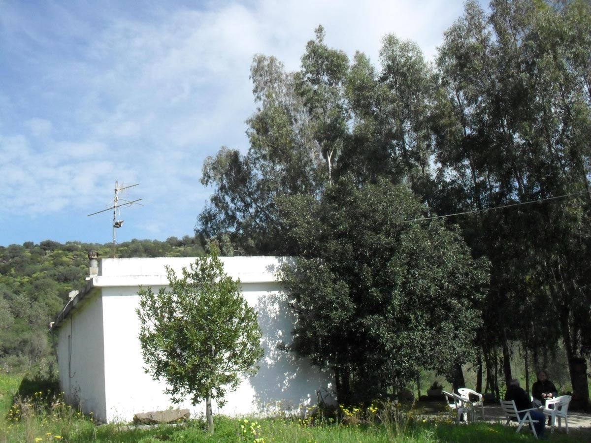 Beide Häuser stehen vor einem Abhang mit Olivenbäumen