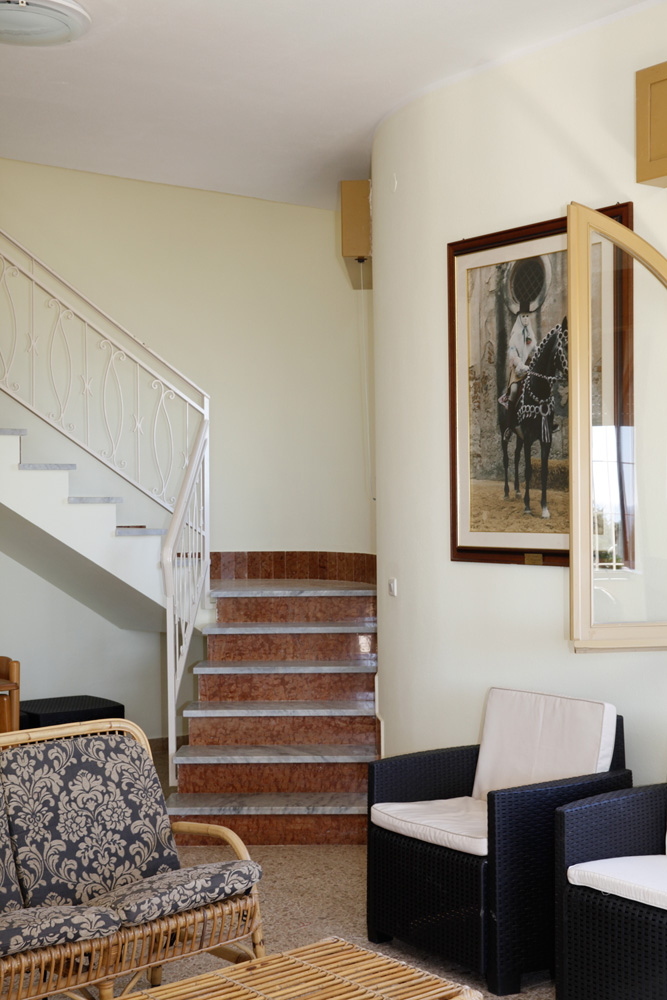 Villa Balena - der Soggiorno von der Treppe zum OG aus gesehen