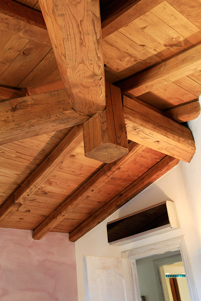 Villa Bisione - die charakteristischen Holzbalkendecken im EG