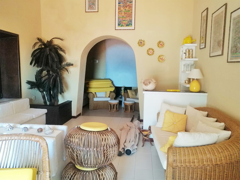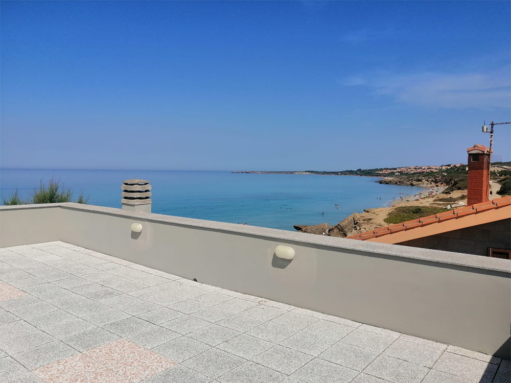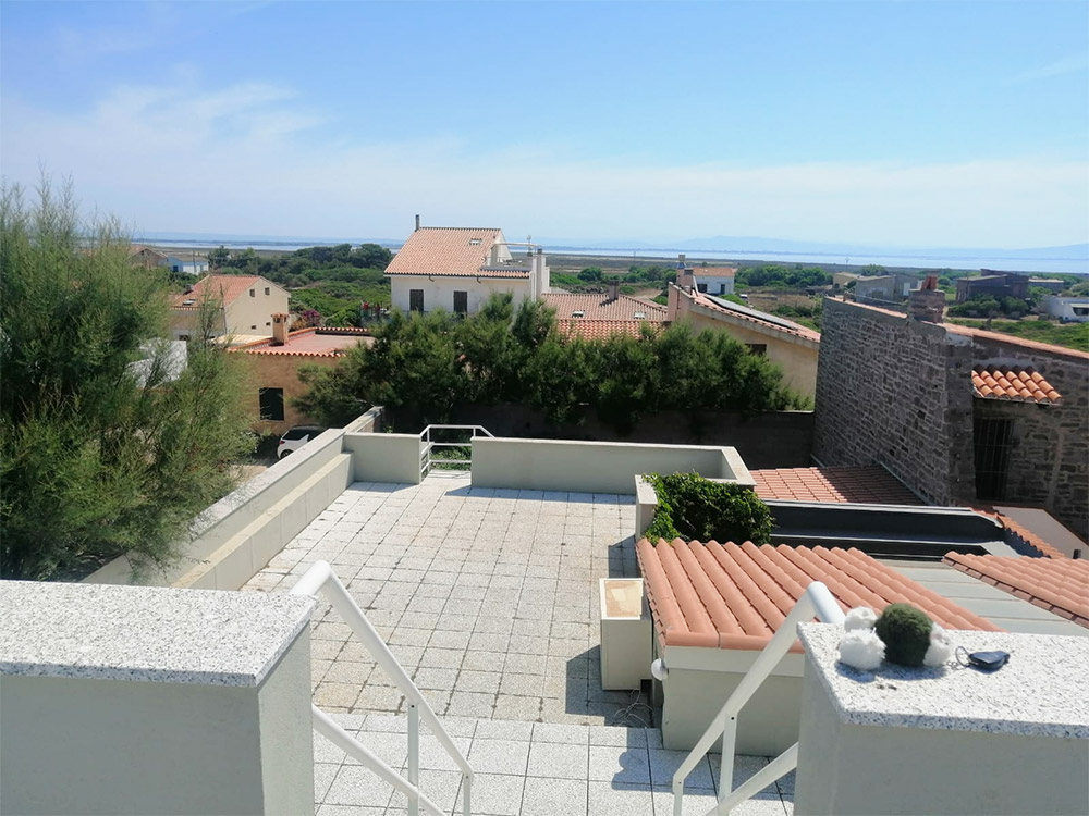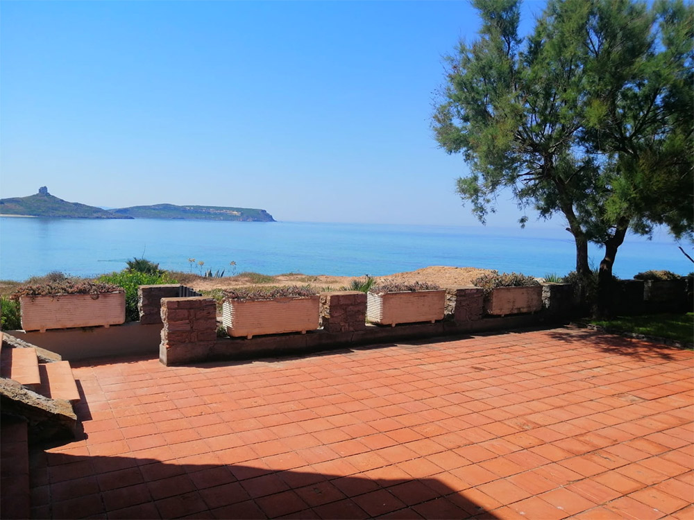 Villa Castiddu - die sehr herrschaftliche Villa dominiert durch ihre Größe und die unschlagbare Panoramalage den Strand von San Giovanni di Sinis mit Blick bis zu den äußersten Ausläufern der Sinis-Halbinsel. Die Villa bietet vier sehr komfortable und dekorativ ausgestattete Schlafzimmer, einen mehrteiligen Wohnbereich, drei Bäder, einen großen, sehr gepflegten Garten, einen Innenhof und die phantastische, riesige Dachterrasse mit Blick über das Meer. Leider akzeptieren die Eigentümer nur erwachsene Mieter.
