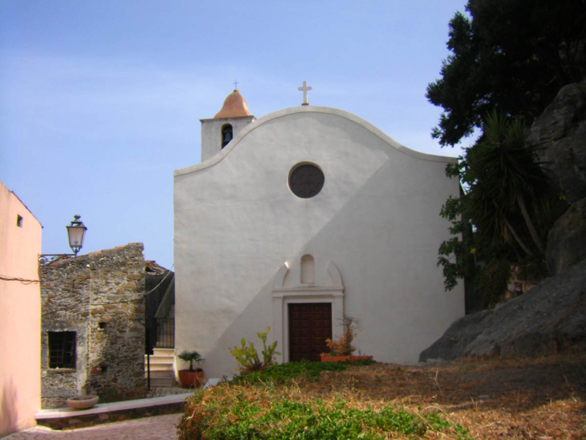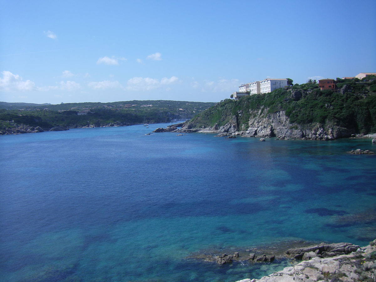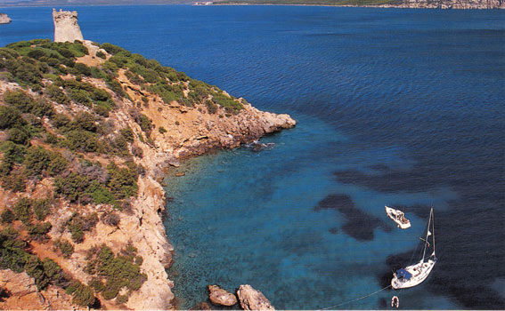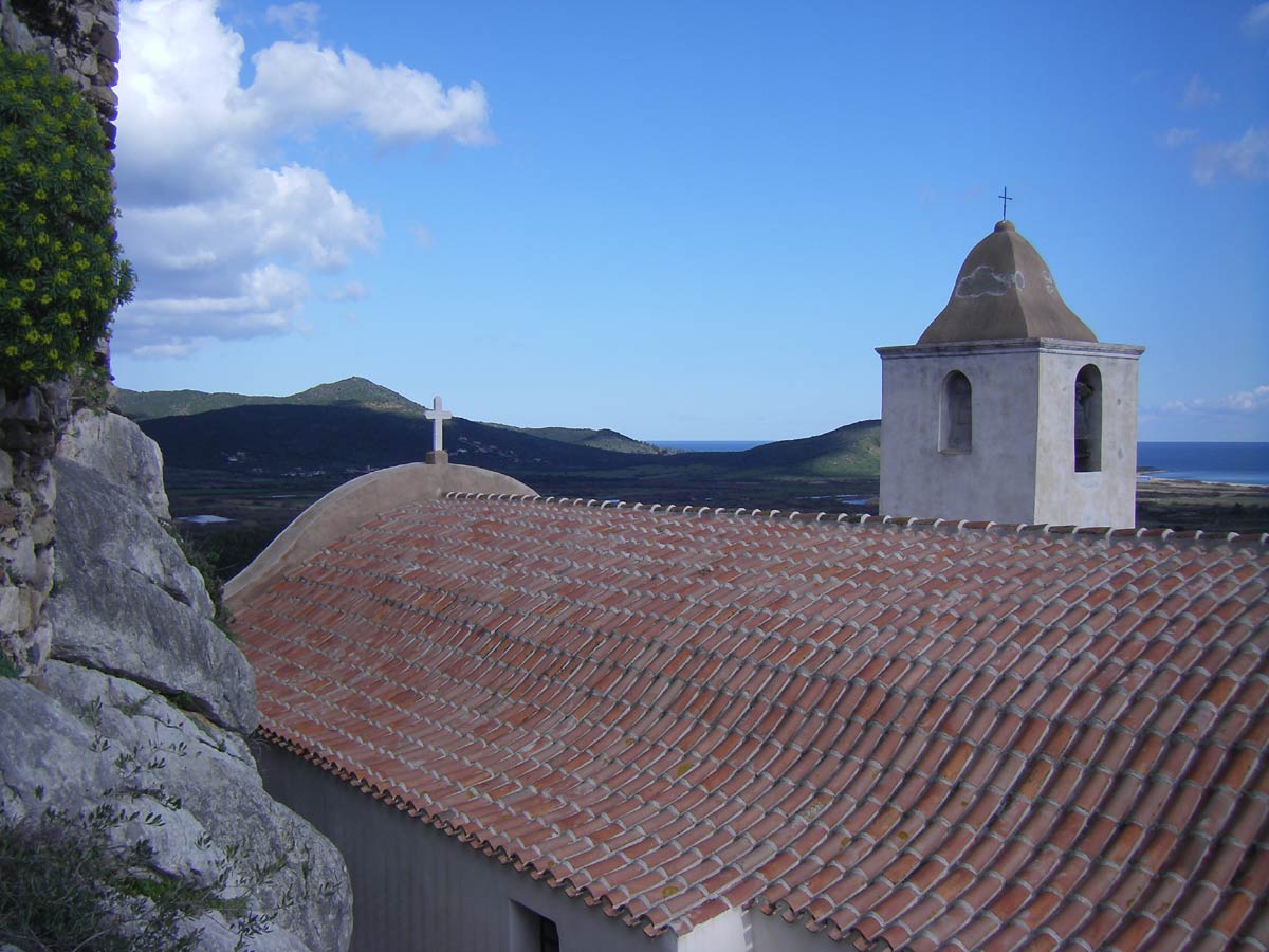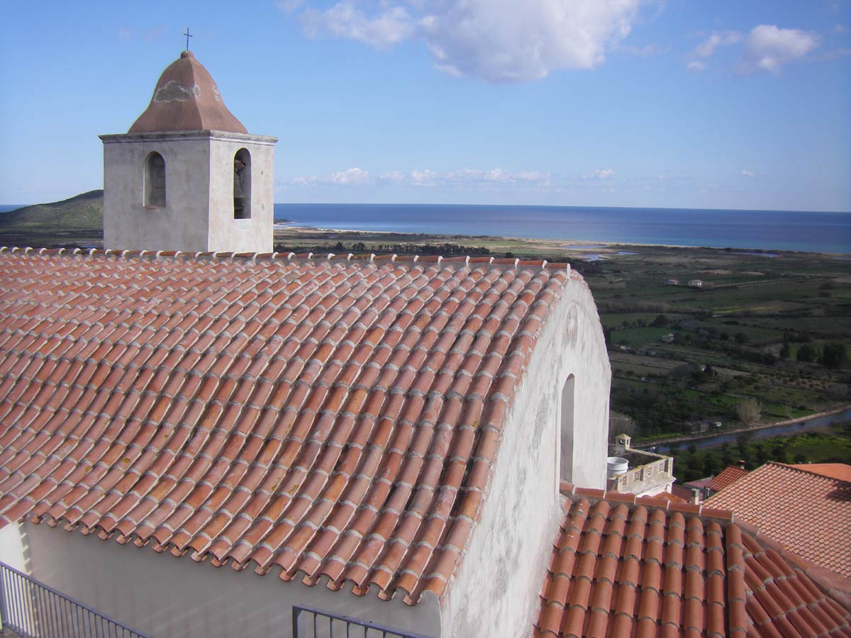 der Kirche der Blick bis nach La Caletta, gar bis Capo Comino