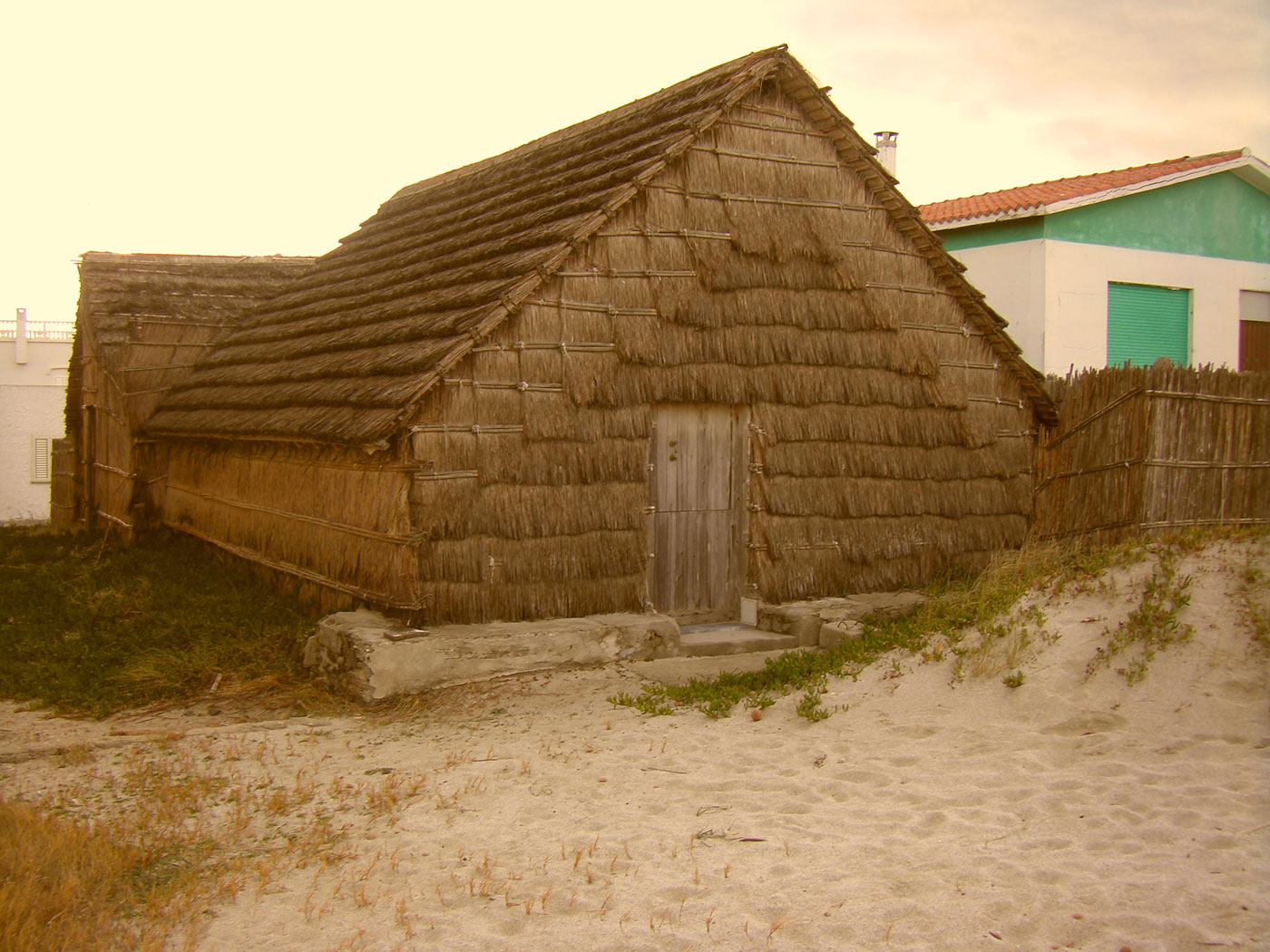 eine alte Fischerhütte aus Schilf steht noch am Strand.