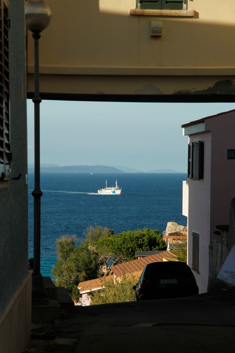 der Stadt aus sieht man das Meer und im Hintergrund Korsika