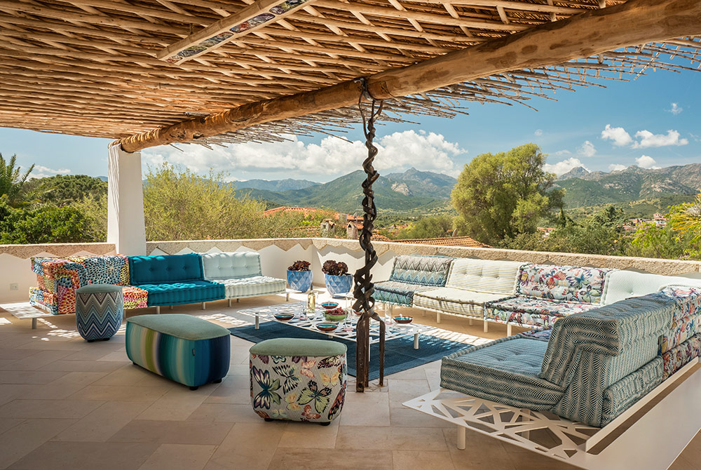 Villa Cucu - hier können Sie Ihren Apéritiv in entspannter Runde genießen, es ist viel Platz und die bequemen Sitze sehen auch noch toll aus - ganz zu schweigen von der umliegenden Landschaft ...