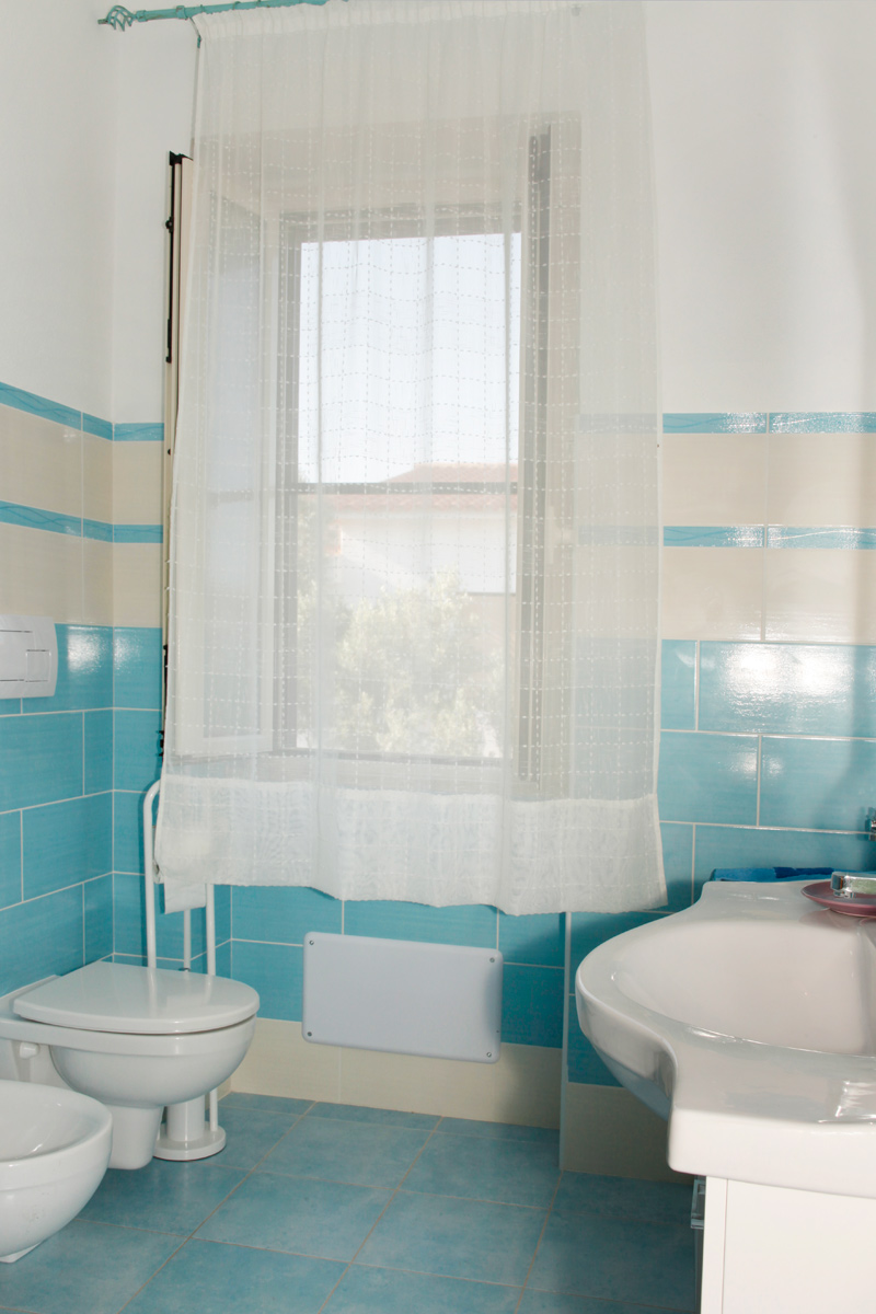 Sandstrand. Die lichte Pineta ist nah und bietet einen Schattenplatz