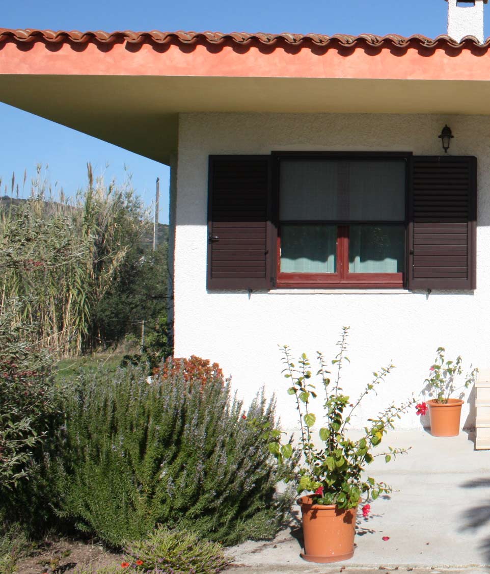 Casa Demelas - vom Balkon der Wohnung Casa Barcavela gesehen, einer der drei Wohnungen von Casa Matta e Peru. Die sehr ruhige Villensiedlung Matta e Peru liegt zwischen Budoni und Posada direkt am Meer und zeichnet sich durch eine sehr lockere Bebauung und über jahrzehnte eingewachsene, gepflegte Grundstücke aus. Hier verbringen viele Sarden ihre Ferien oder Wochenenden, die sonst in Nuoro leben.