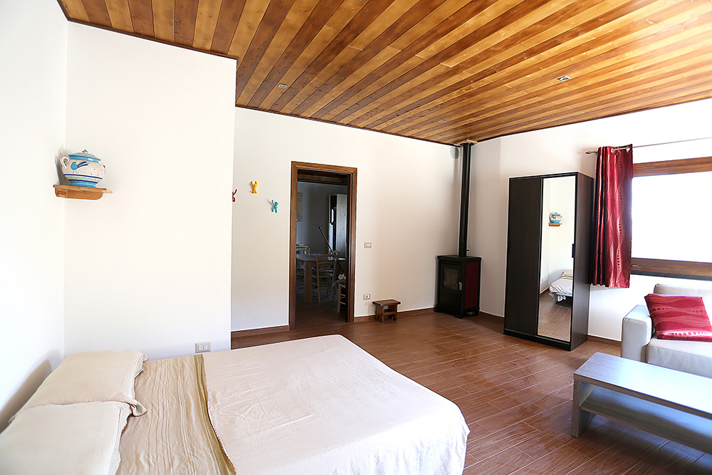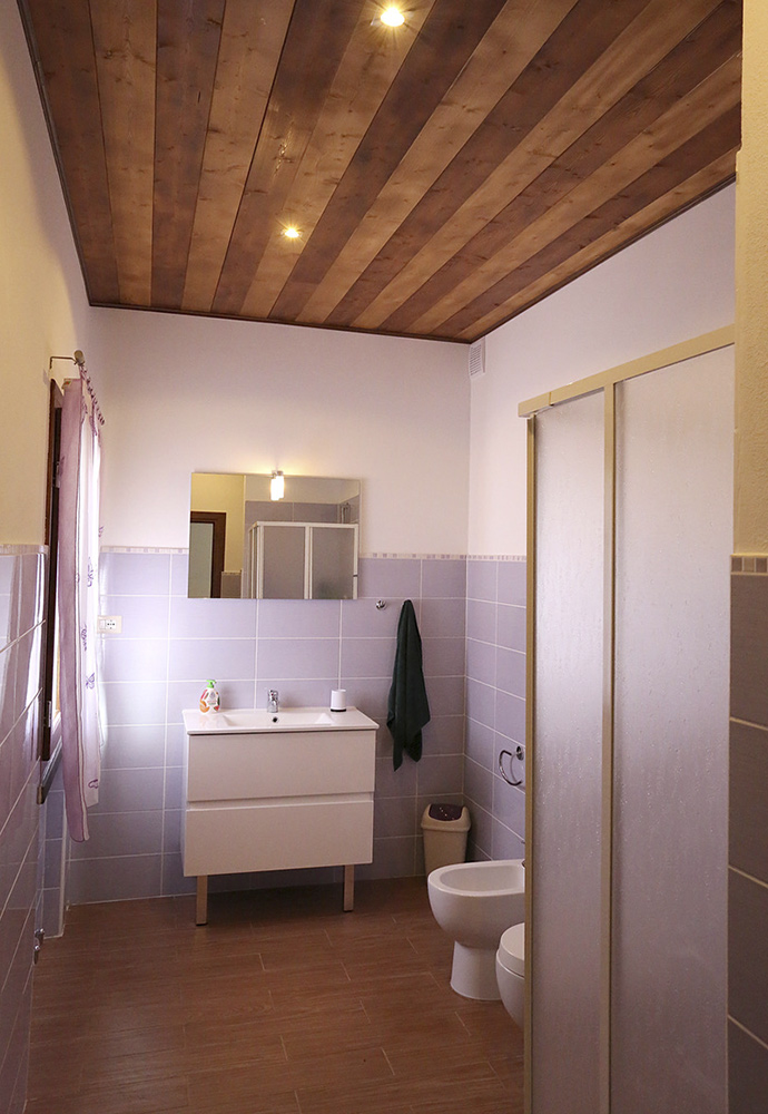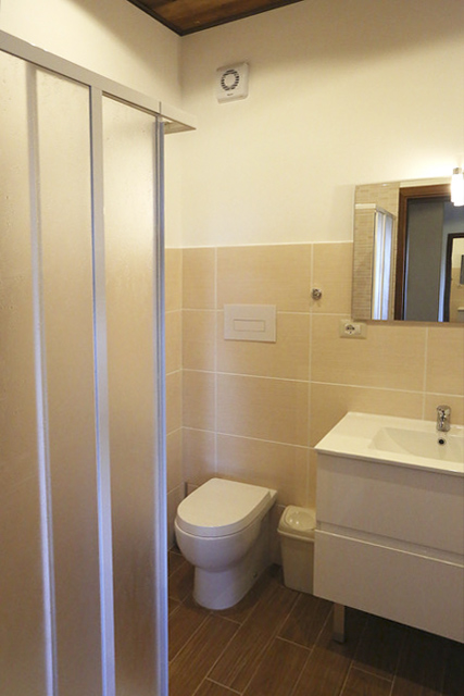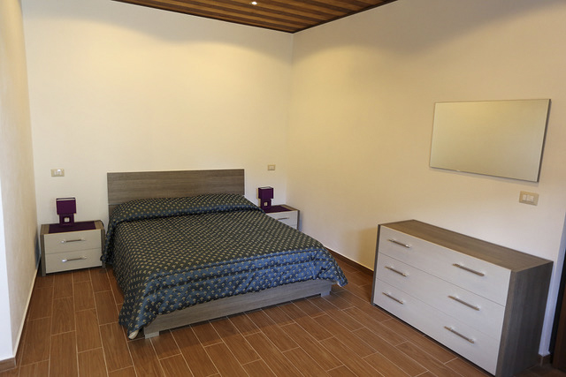 Schlafzimmer mit Matrimoniale und Bad mit Vollausstattung (WC, Bidet, Waschtisch und Dusche)