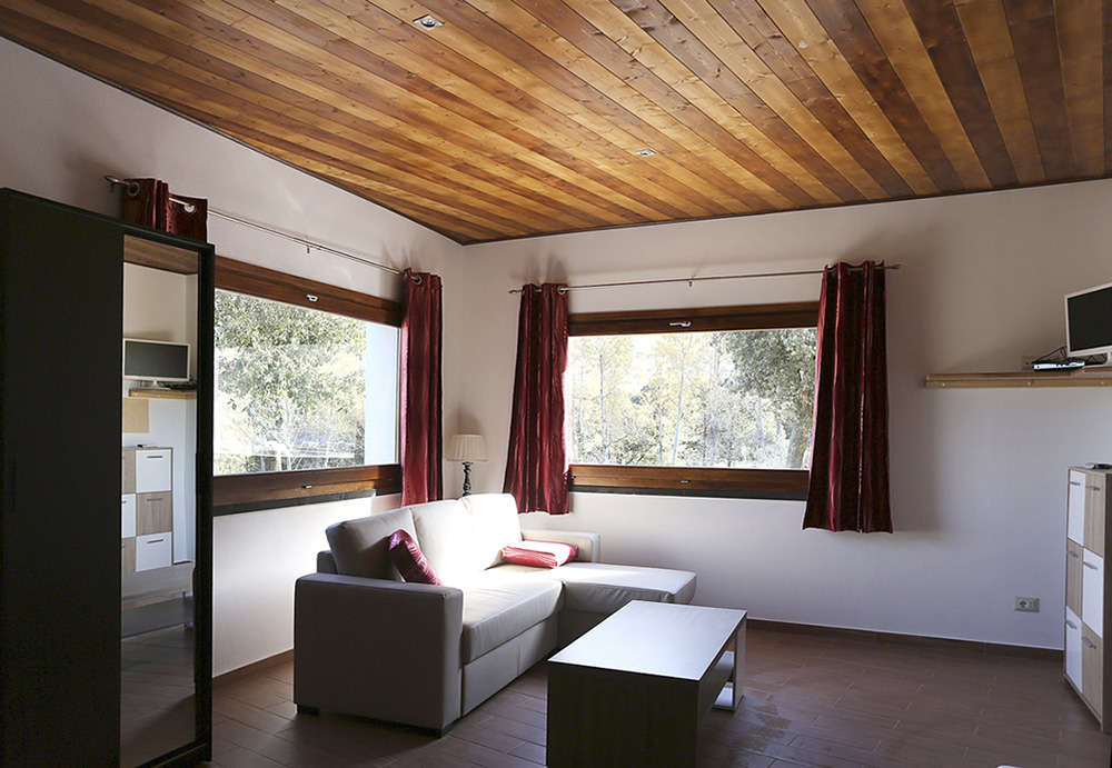 Casa Elike - das Wohnzimmer mit zwei Panoramafenstern