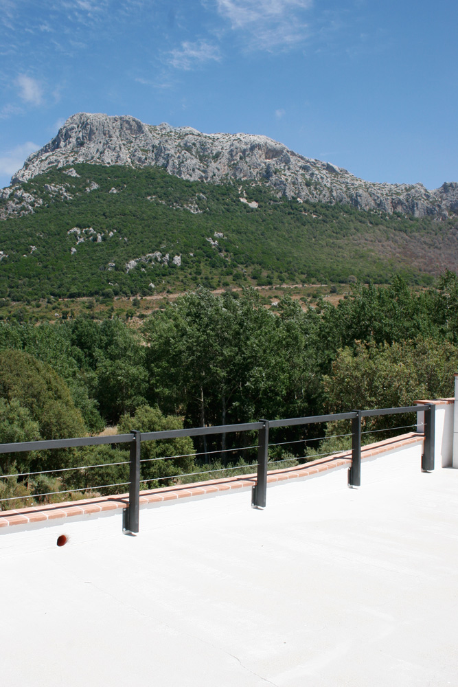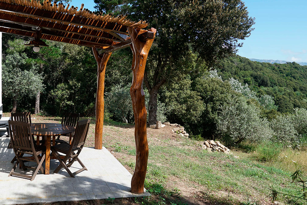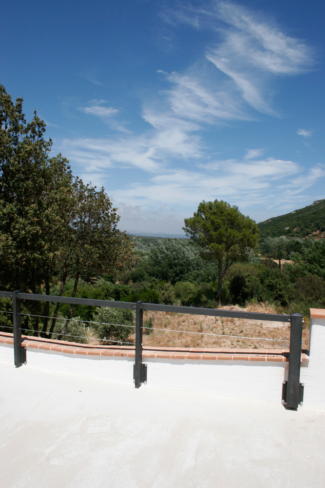 Eine Wendeltreppe führt auf die Dachterrasse, die einen fantastischen 360°-Blick bietet. Hier oben liegen Sie in der Sonne inmitten hoher Bäume und genießen das fantastische Panorama mit Sicht bis zum Meer.