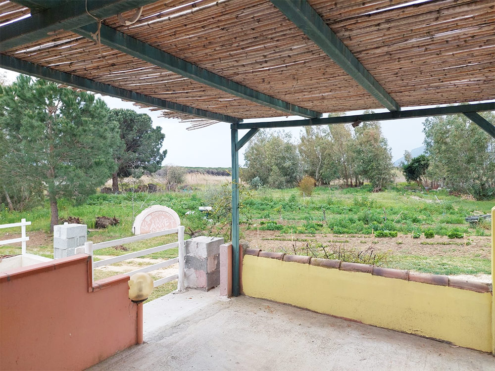 Casa Grillo - die Terrasse mit ortsüblichem Schilfdach. Hier sitzen Sie im angenehmen Halbschatten. Ein Gartentisch mit Stühlen wird selbstverständlich bereitgestellt.