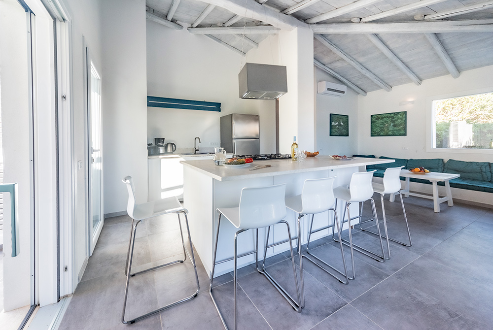 Villa Grina - der Wohnraum mit Sitzlandschaft und großem Kochbereich