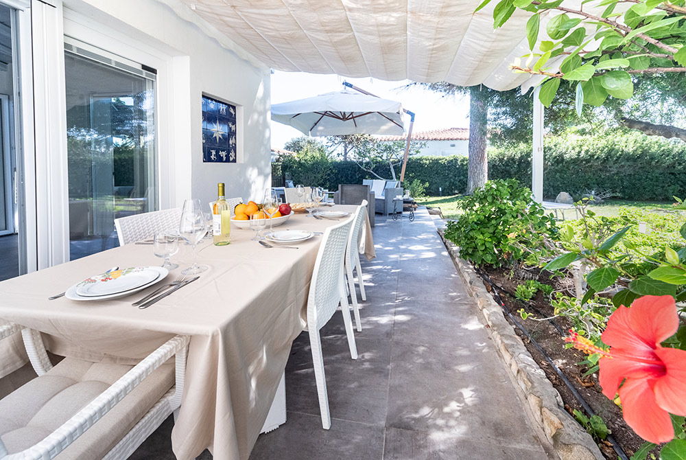 Villa Grina, freistehend und vollständig umzäunt, mit mehreren großzügigen Veranden und einem schönen Garten steht besonders strandnah am Ende von Monte Nai (Costa Rei) in einer exklusiven Villensiedlung.