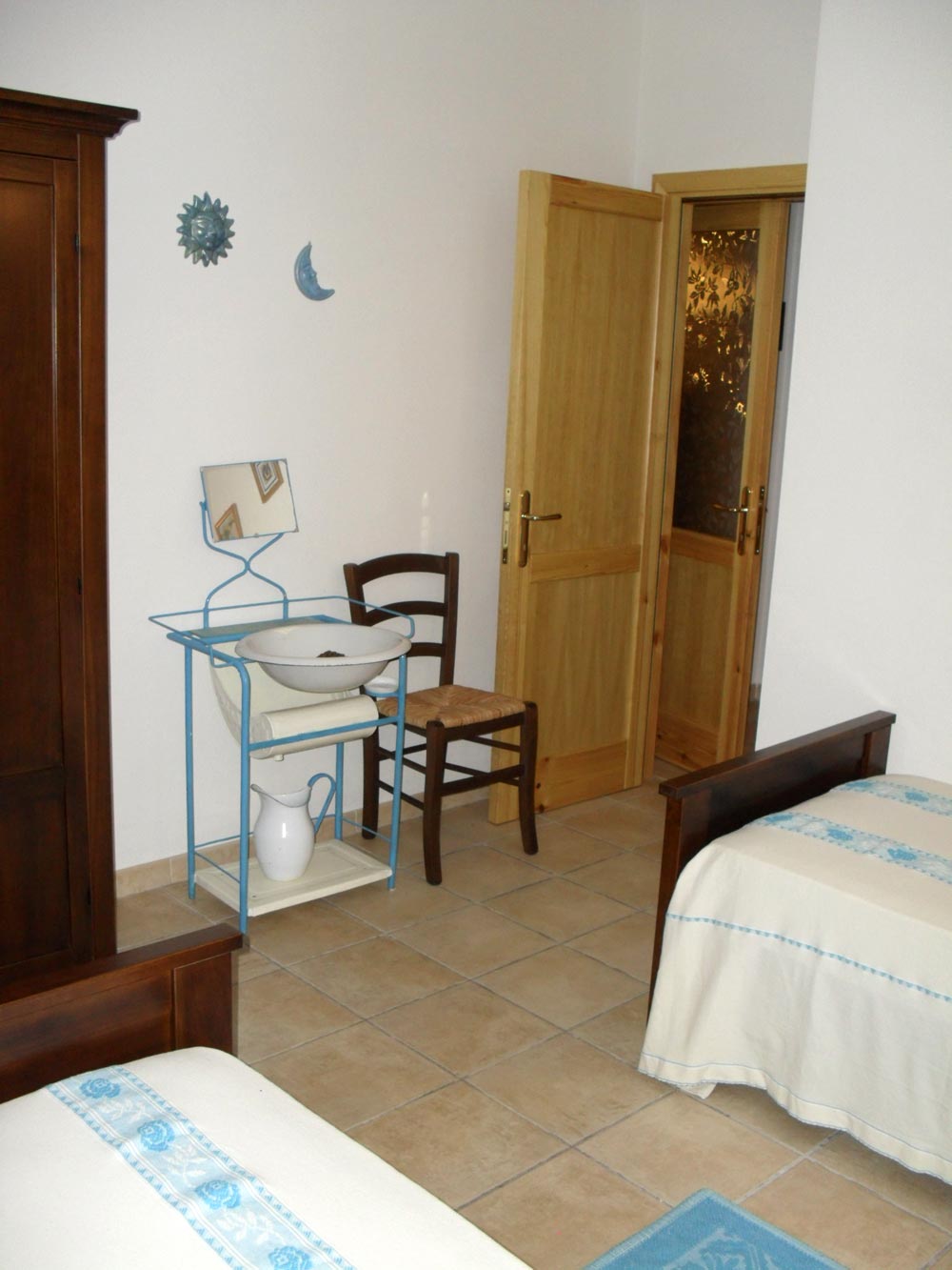 Ein Schlafzimmer von Sa Intza mit schönem alten Waschtisch