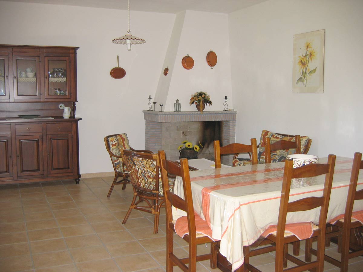 Sa Intza - der Esstisch trennt den Küchen- vom Wohnbereich im großen Soggiorno