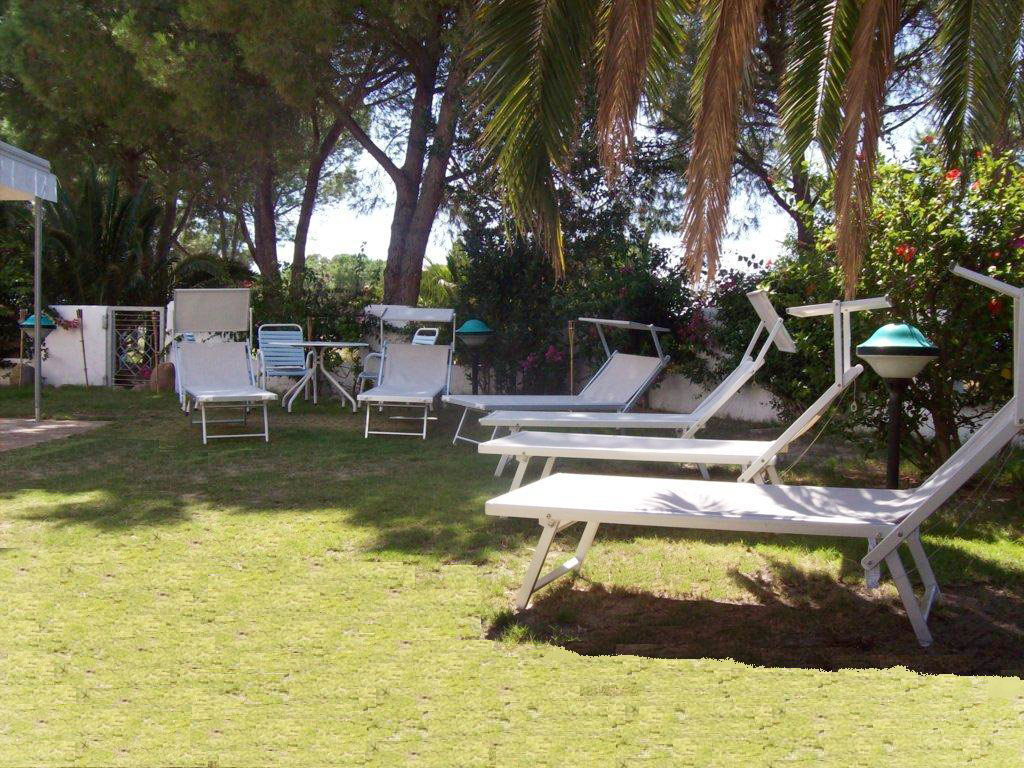 Villa Luria - Sonnenliegen im großen Garten. Im Schatten ist es hier über Mittag angenehmer als am Strand.