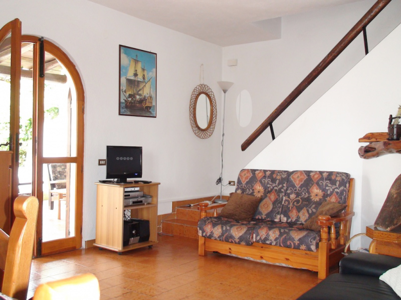 Im Obergeschoss liegen die Schlafzimmer, alle drei bieten Meerblick. Im EG und OG befindet sich je ein Badezimmer mit Badewanne bzw Dusche. Im EG befindet sich ein Soggiorno mit grossem Kamin und
