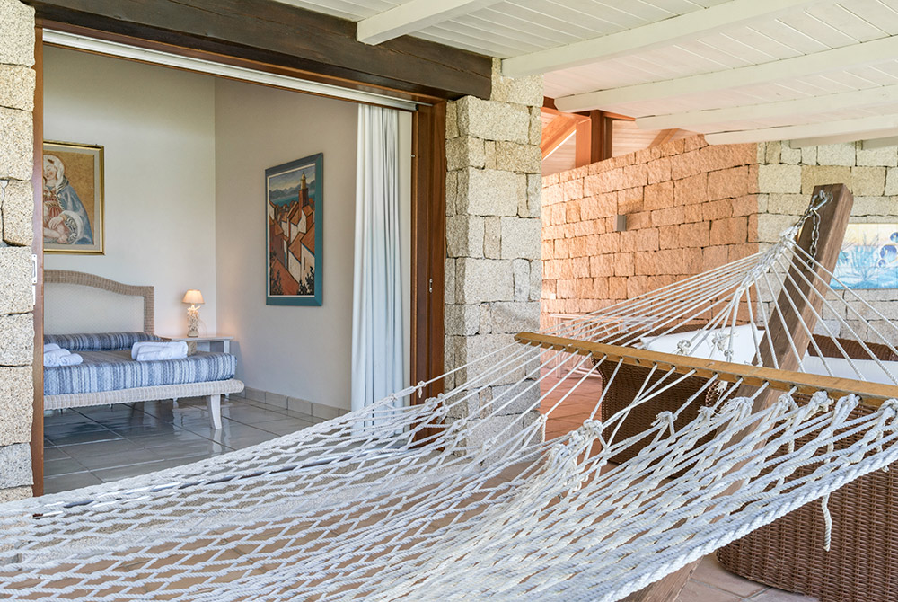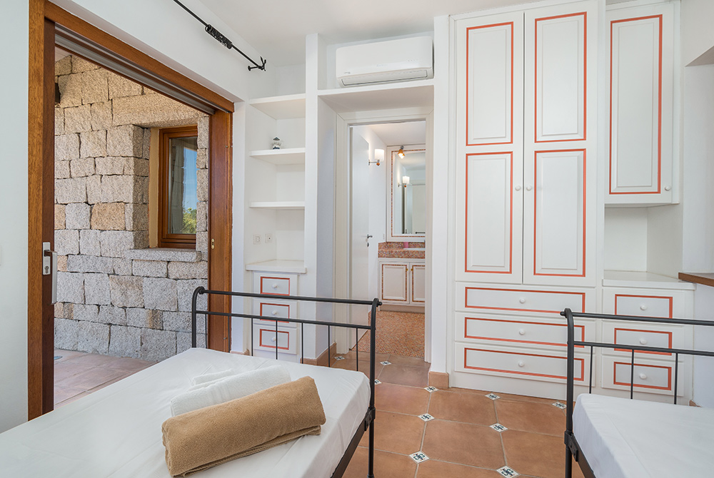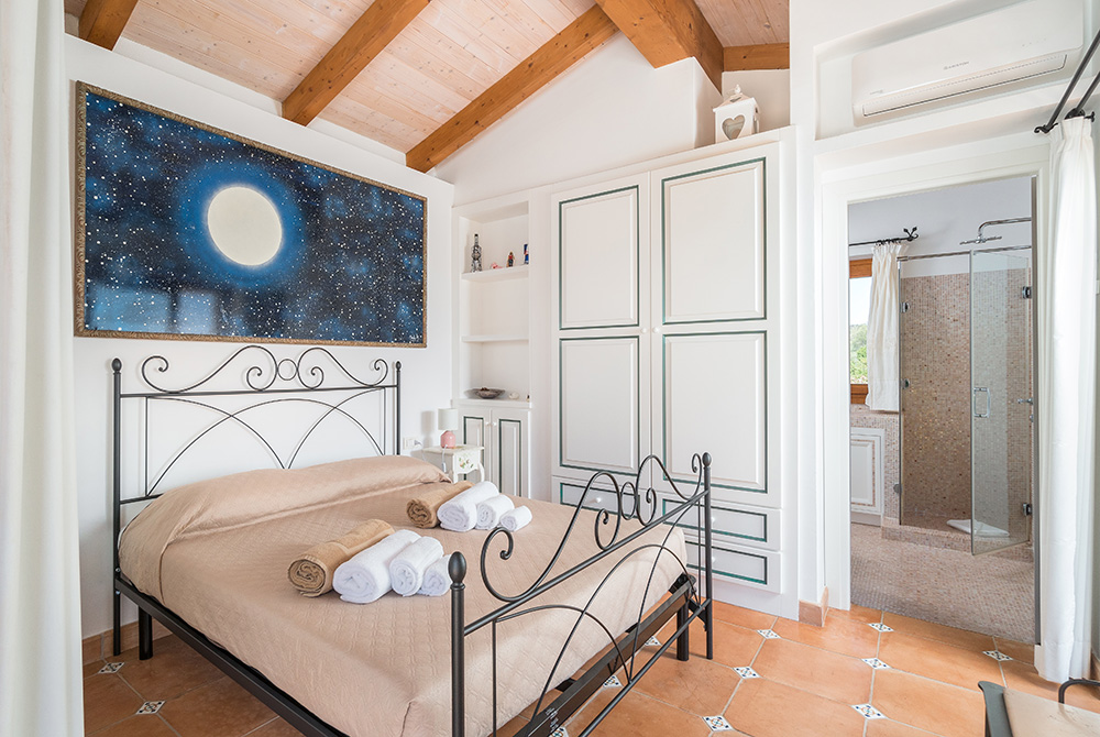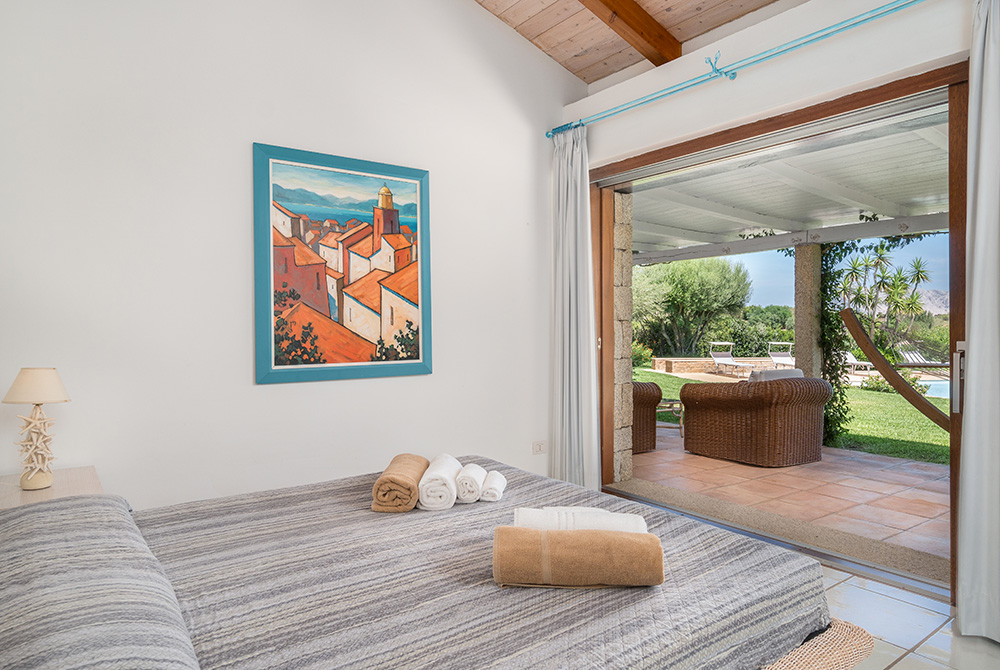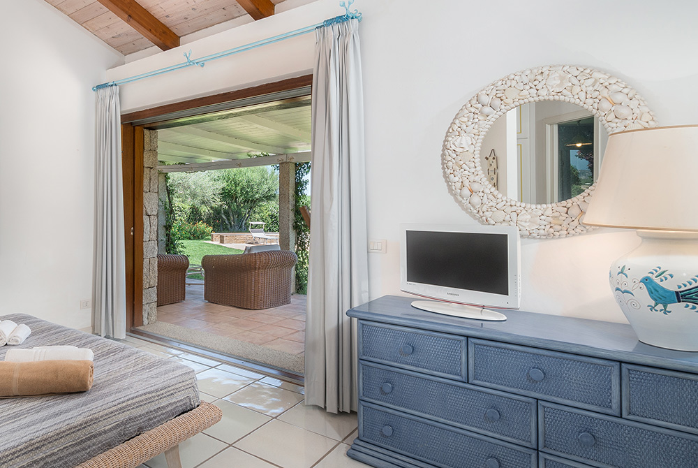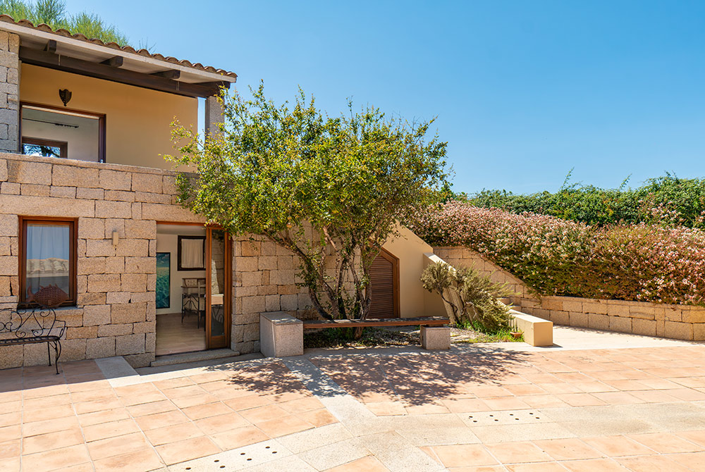 Das Haupthaus besteht aus einem hellen und geräumigen Wohnbereich mit komfortablem Wohn- und Esszimmer, einer sehr gut ausgestatteten Küche und einem Hauptschlafzimmer mit geräumigem Bad (Badewanne und Dusche) und begehbarem Kleiderschrank. Sowohl der Wohnbereich als auch das Schlafzimmer haben direkten Zugang zur großen überdachten Veranda und bieten einen herrlichen Meerblick. Der Hafen und der Flughafen von Olbia sind etwa 30 Minuten entfernt.