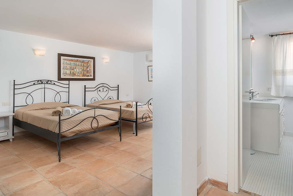 Villa Mira - Das Nebengebäude ist über einen charakteristischen Innenhof zu erreichen und besteht aus einem Schlafzimmer mit Doppelbett und eigenem Bad, einem Schlafzimmer mit zwei Einzelbetten und eigenem Bad sowie einem geräumigen Schlafzimmer mit zwei französischen Betten und eigenem Bad.