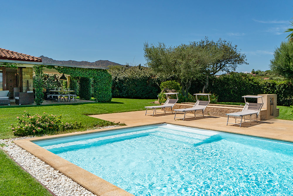 Villa Mira steht in Puntaldia (Nordostsardinien) - ein elegantes, freistehendes Haus mit Dépendence, umgeben von einem gepflegten und großzügigen Privatgarten mit Pool. Das Anwesen liegt in der Nähe des besonders schönen Strandes Lu Impostu, in einer exklusiven, ruhigen Wohnanlage in ungestörter Privacy.