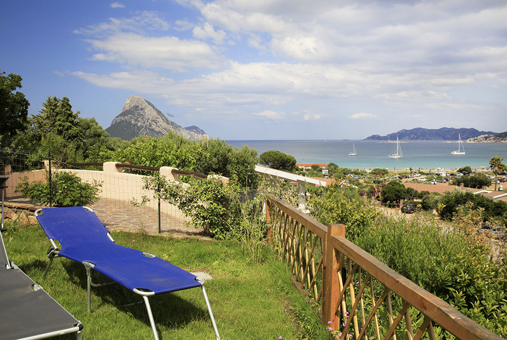 Casa Piricocco ist eine Wohnung in bester Lage mit 2 Schlafzimmern bzw einem Schlafzimmer mit Matrimoniale (Ehebett) und einem Schlafbereich mit Matrimoniale im großen Soggiorno, der außerdem Platz für einen Küchen- und einen Sitzbereich mit Sofa und TV bietet. Der kleine Garten mit Panoramaterrasse und freiem Meerblick bis zur imposanten Felseninsel Tavolara erweist sich im Sommer als der wichtigste Wohnbereich mit überdachter Terrasse, kleinem Siztplatz mit Tisch und der Wiese zum Sonnen.. Die Lage am Hang begünstigt die perfekte Privacy.