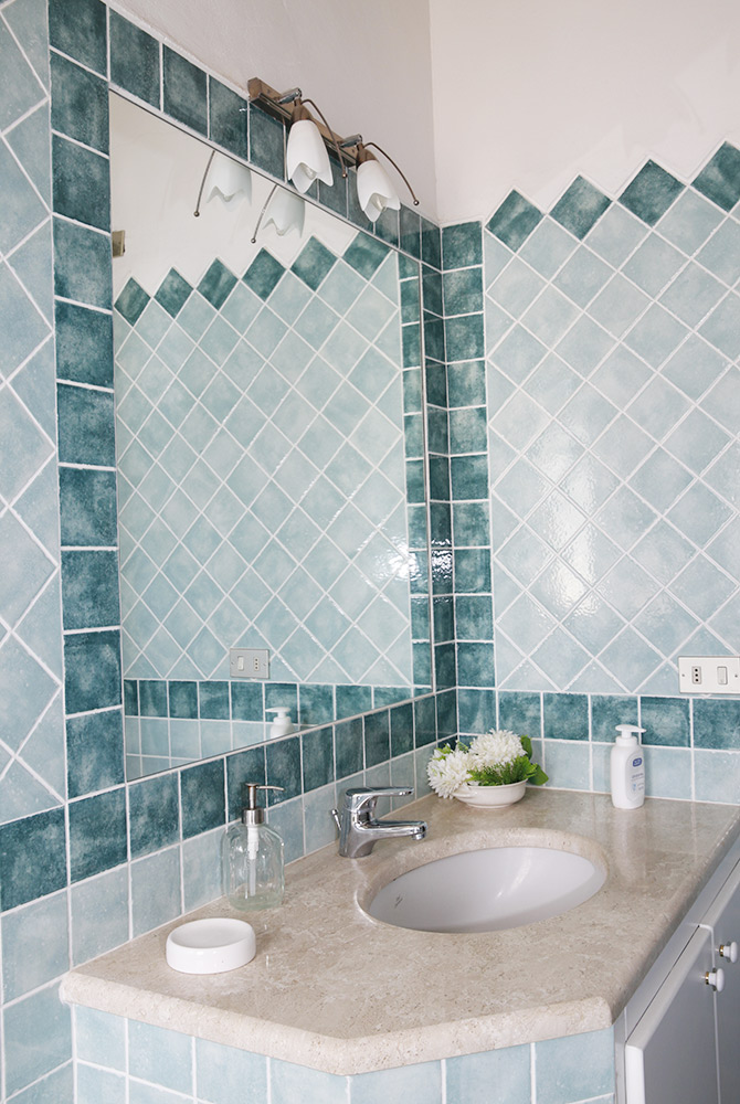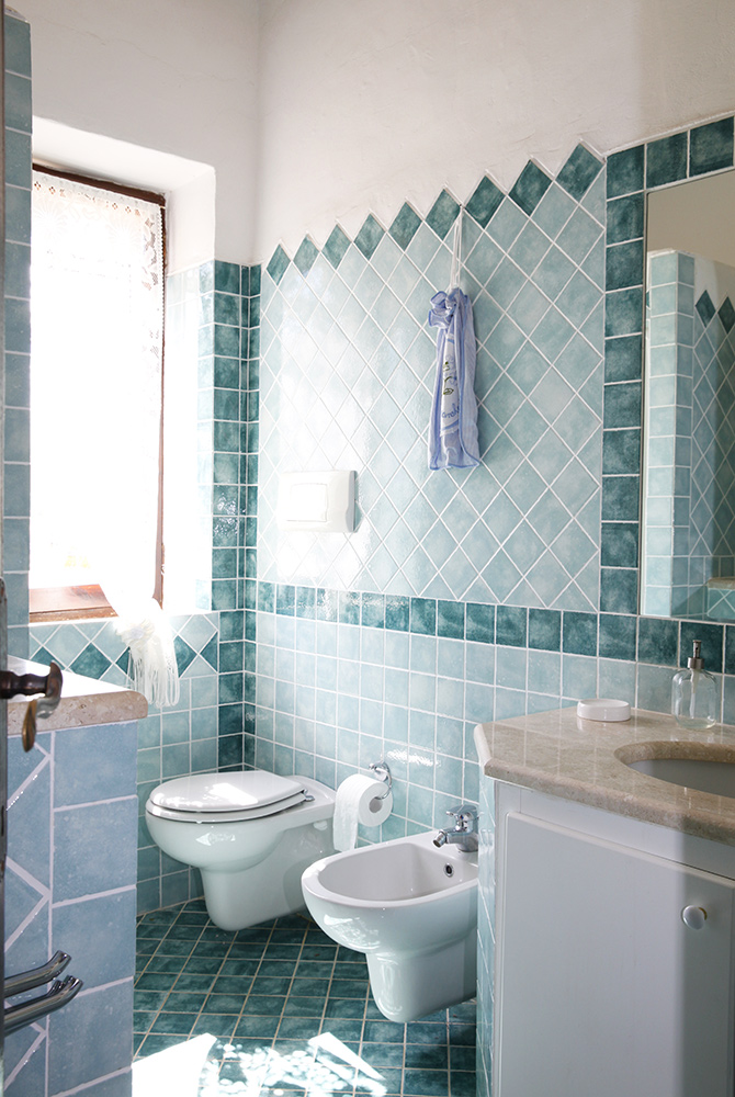 Casa Pitrizza - das komfortable Bad mit Vollausstattung, Waschtisch, Dusche, WC und Bidet