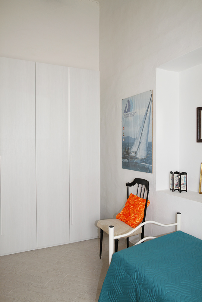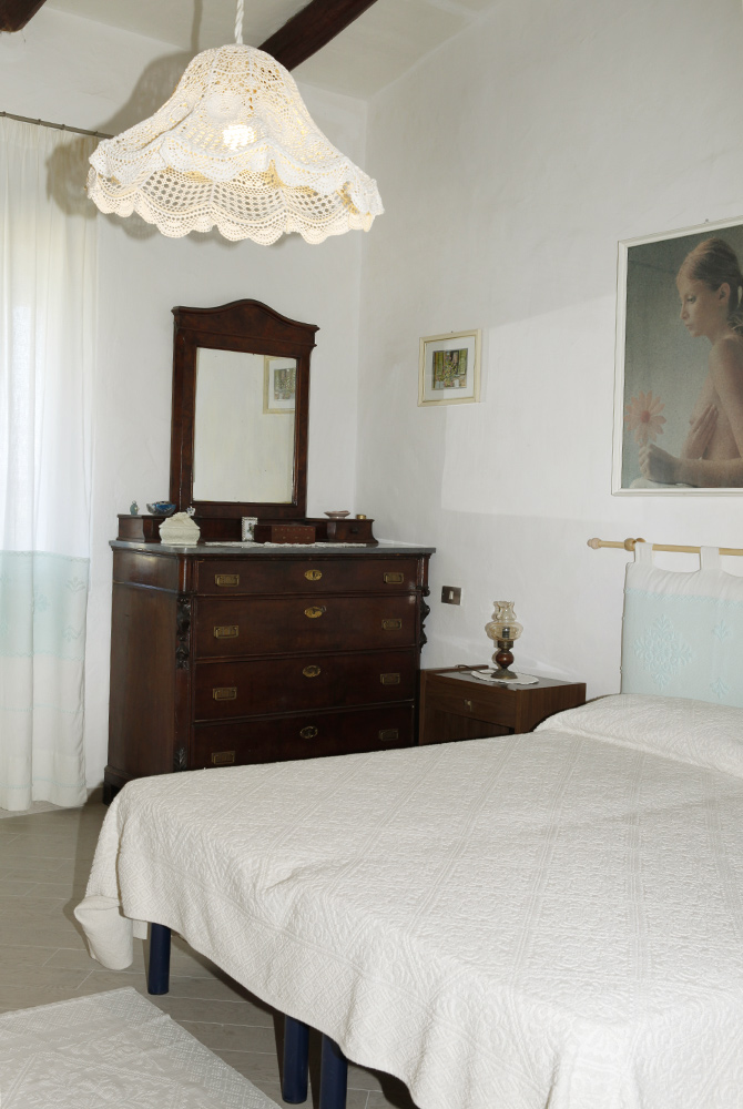 Casa Pitrizza - das Schlafzimmer mit Matrimoniale und altem, restauriertem Kleiderschrank