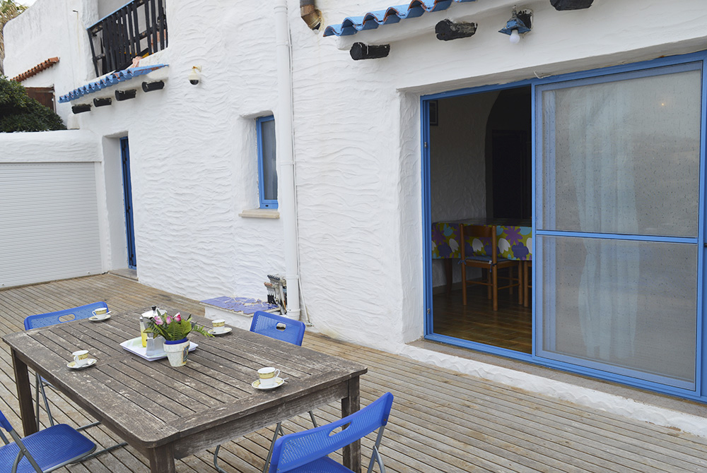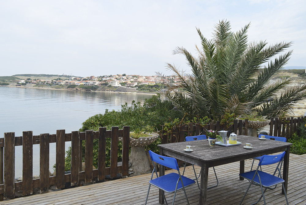 Casa Sa Praia - die große Terrasse zum Meer hin mit Holzboden