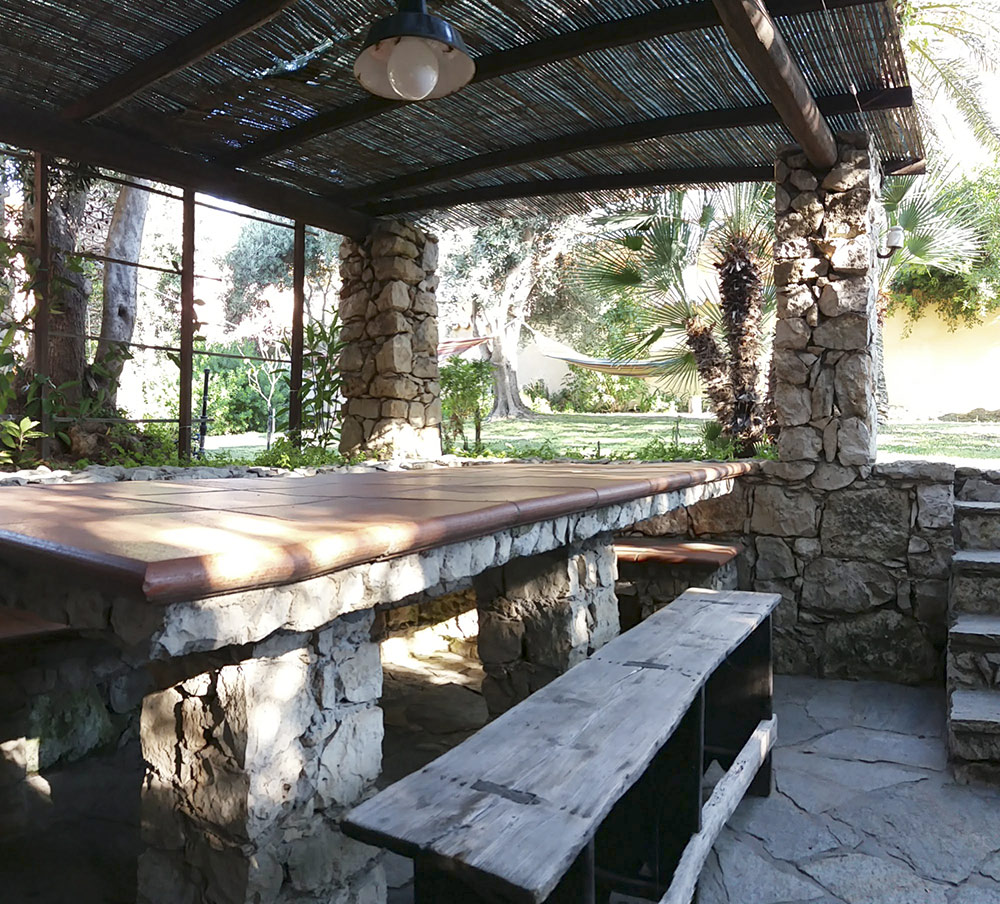 Casa Sa Rena - Der mit Schilfrohr überdachte große Esstisch im Garten